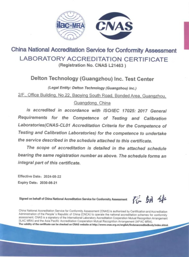 欧冠官方注册-欧冠(中国) 检测中心(以下简称“广合科技检测中心”)顺利通过中国合格评定国家认可委员会(“China National Accreditation Service for Conformity Assessment”, CNAS)的认可,成功获得CNAS认可标识和认可证书(注册号:CNAS L21463),标志着我司在检测技术能力和管理水平上迈上了新的台阶。